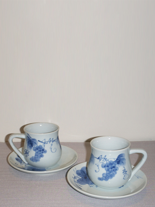• (左) 白磁靑華蘭草文杯 (右) 白磁靑華蘭草甁