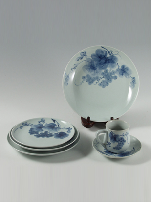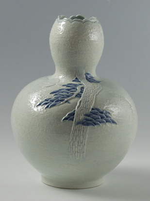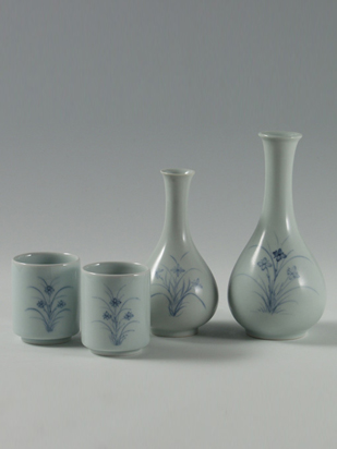 • (左) 白磁靑華蘭草文杯 (右) 白磁靑華蘭草甁