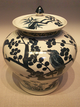 • 白磁青華梅鳥文蓋付壺 H17*W14