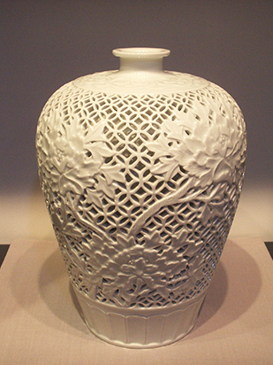 • 白磁牡丹文透刻壺 H33*W25