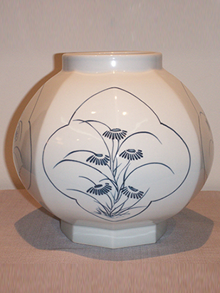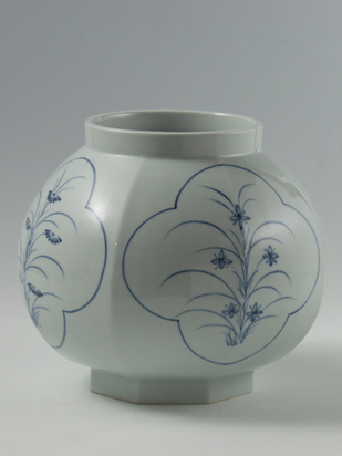 • 白磁蘭草文八角瓶 H13*W11.5